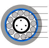 阻燃外护套 包带 填充复合物 复合钢带 松套管光纤 加强钢丝 |