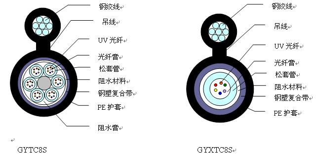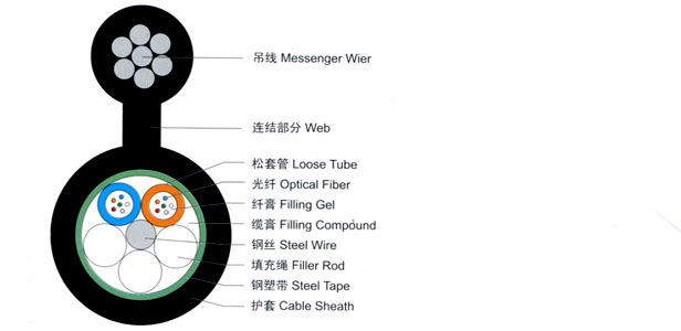 安装施工方便,室外通信用、金属加强构件、光纤松套层绞、全填充、钢(铝)-聚乙烯粘结护套8字型自承式光缆。