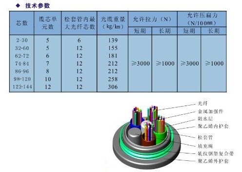 - 非金属加强构件 松套层绞填充式聚乙烯护套通信用室外光缆
