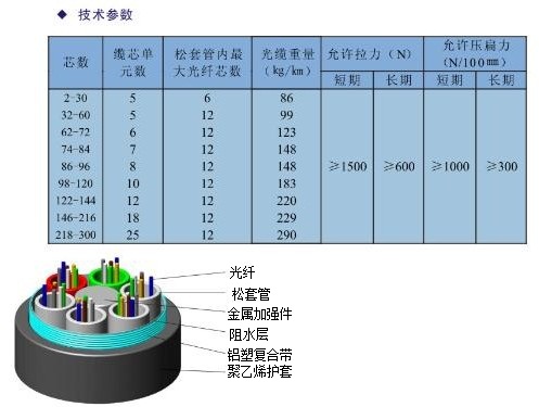 GYTA型光缆是金属加强构件、松套层绞填充式、铝-聚乙烯粘结护套通信用室外光缆