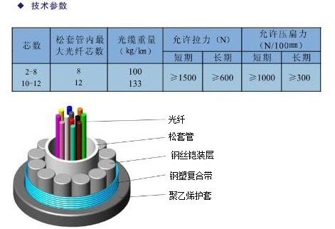 GYXTS金属加强构件钢-聚乙烯粘接护套,中心管式全填充型通信用室外光缆