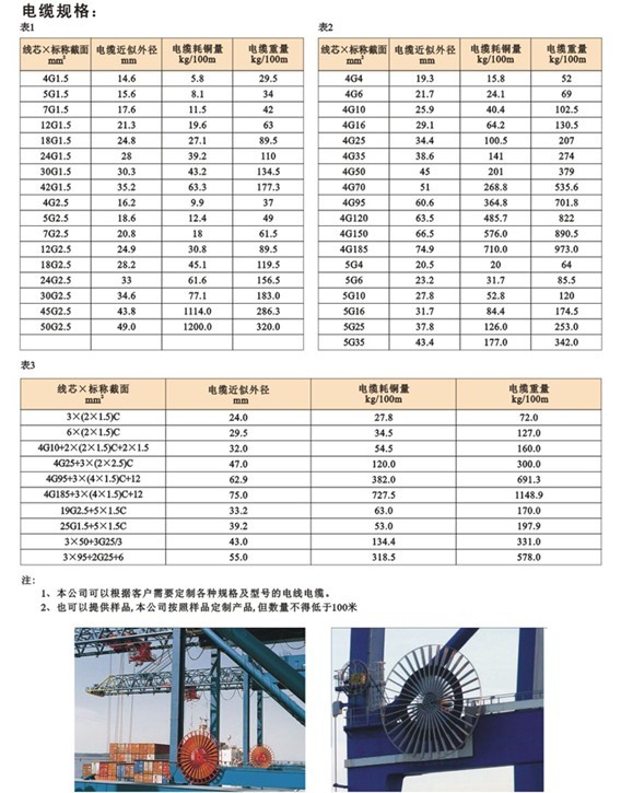 - 移动设备(堆取料机、港机)卷筒用0.6-1KV低压扁平电缆