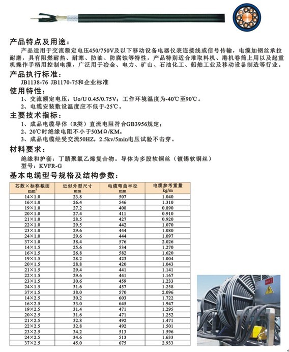 产品名称:KVFR-G 移动设备用控制圆形软电缆。