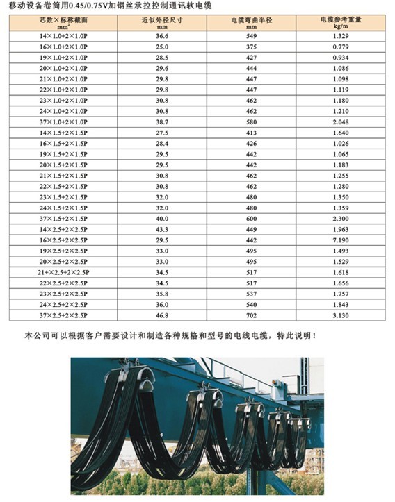 - YKVFRPG-0.45/0.75KV 8*2.5+2*2.5P卷筒用加钢丝承拉控制软电缆