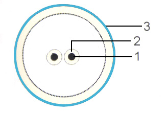 1、软芯铜导体(四钢三铜) 2、绝缘 3、护套