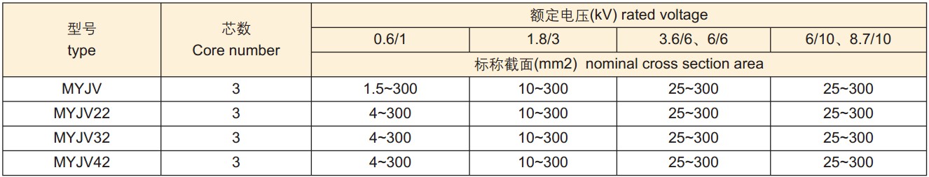 矿用高压电缆生产范围: