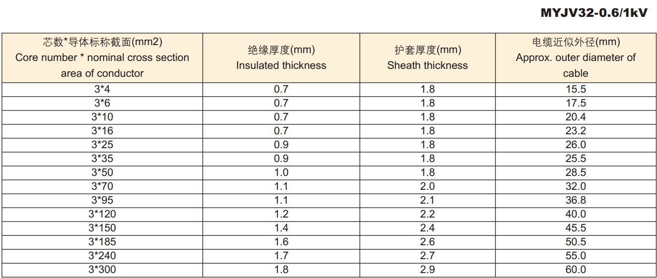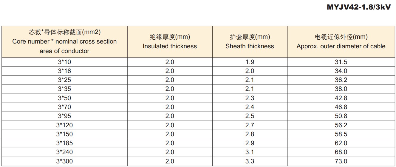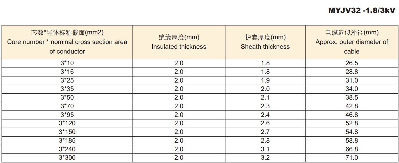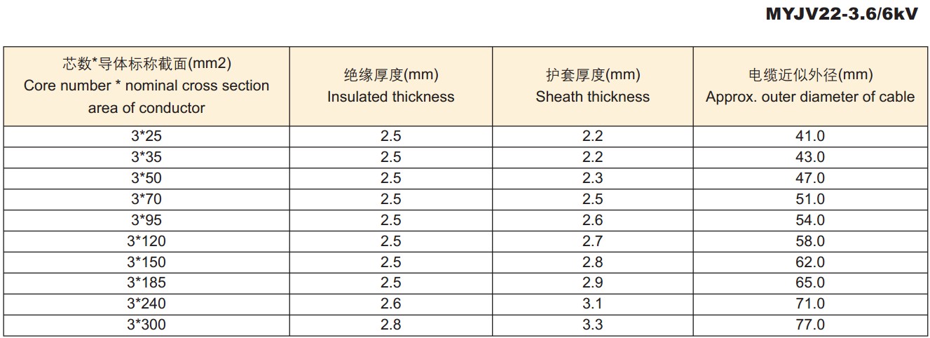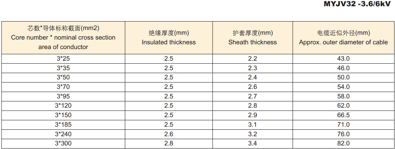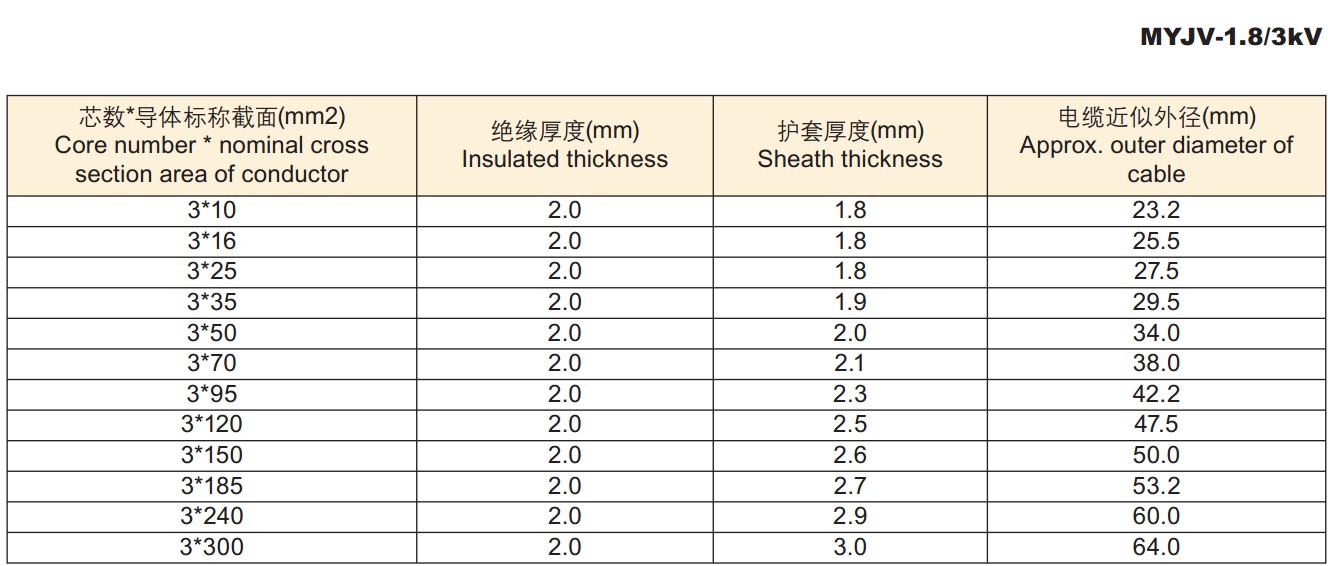 电缆外径尺寸: