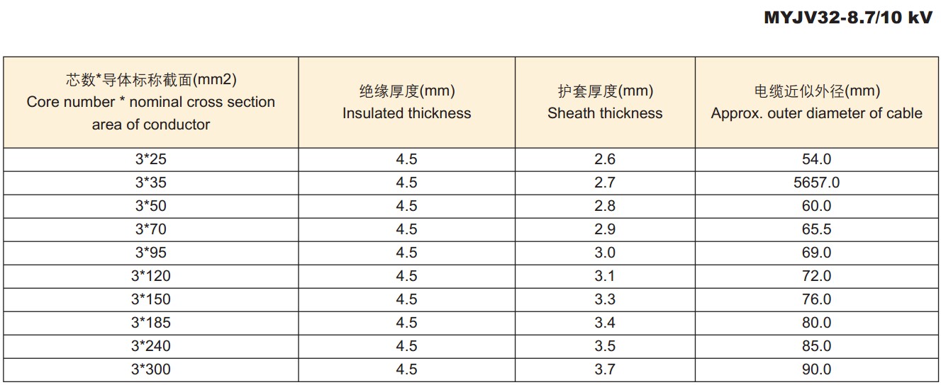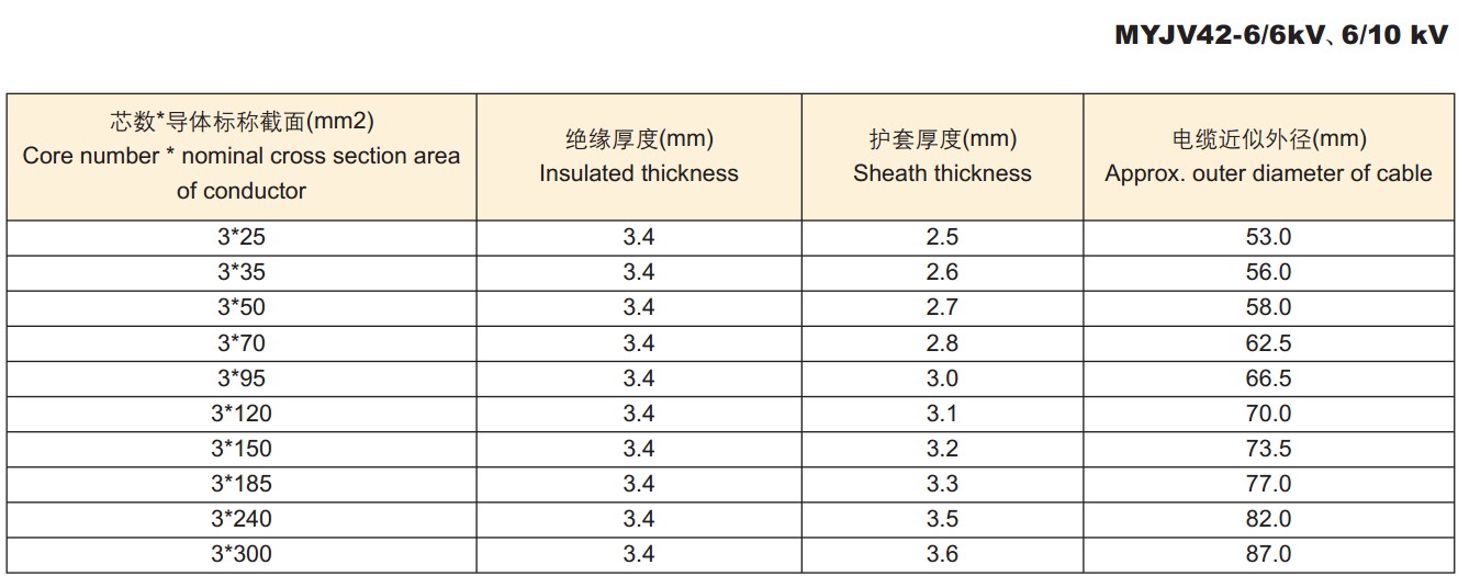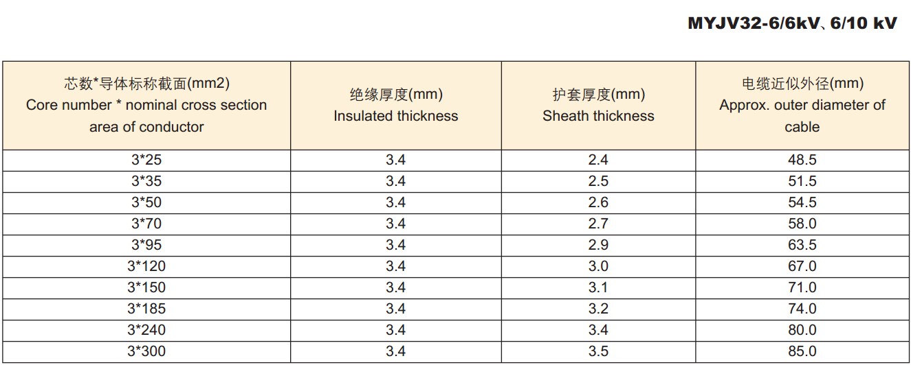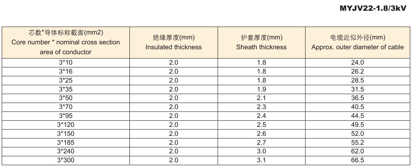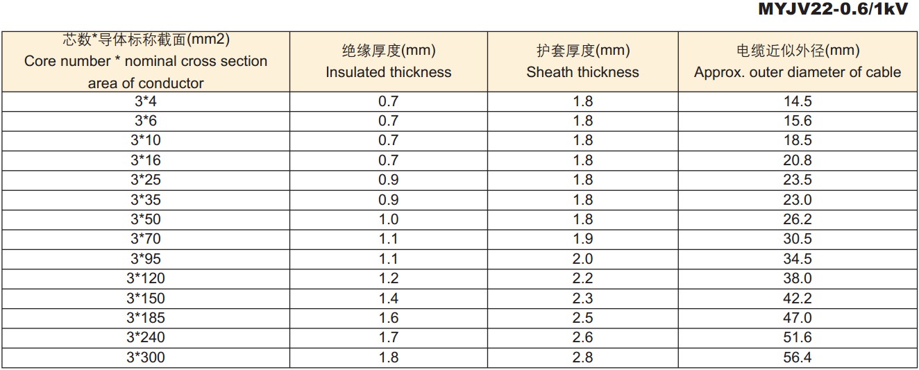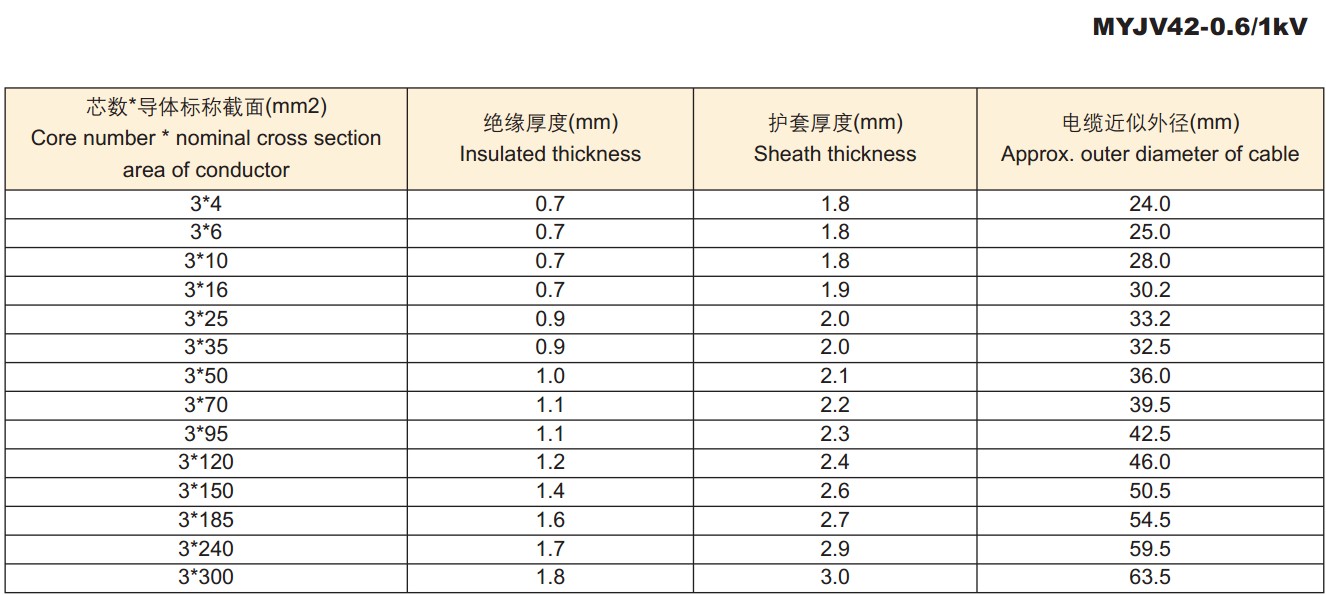 电缆外径尺寸: