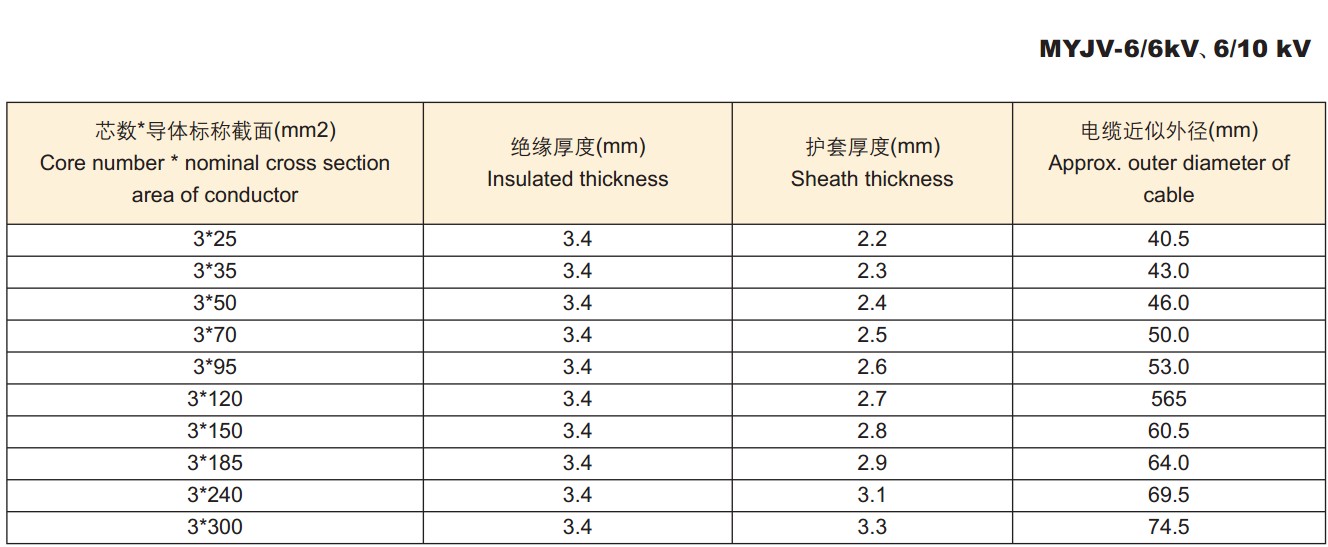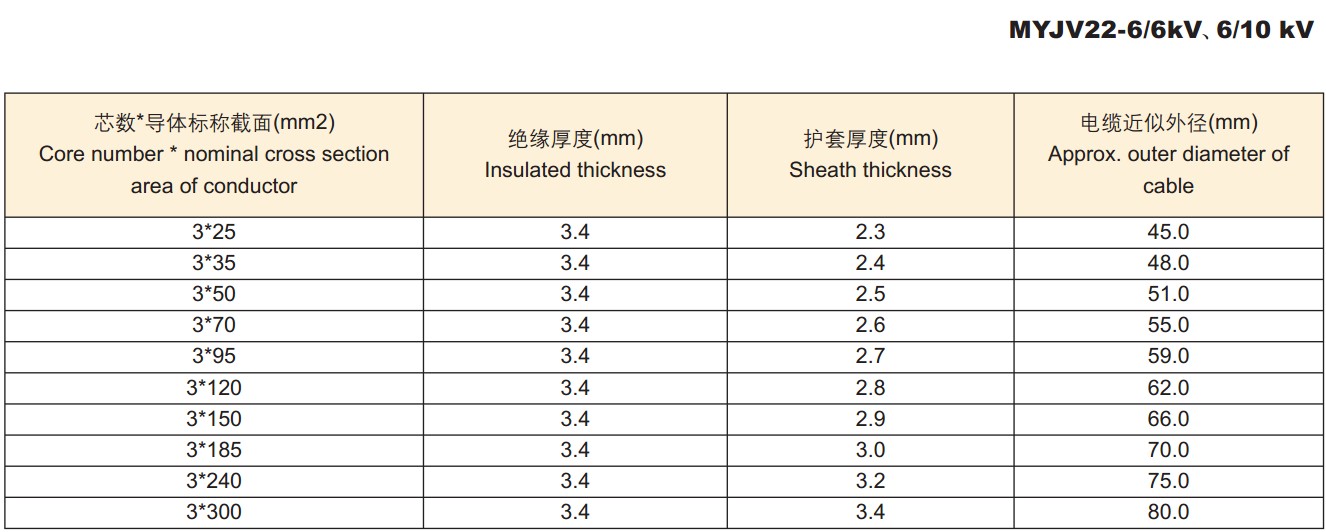 1、电缆导体的允许最高工作温度为90℃。
