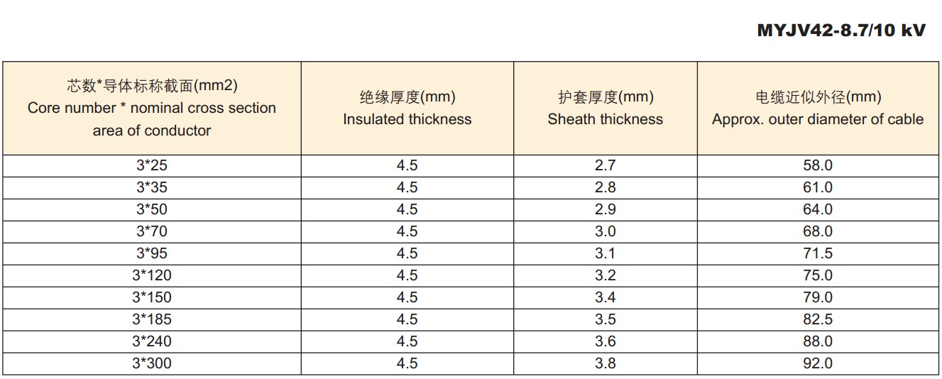 矿用高压电缆生产执行标准 : MT818.13-1999《煤矿用额定电压10kV及以下铜芯固定敷设阻燃电力电缆第3 部分,煤矿用交联聚乙烯绝缘电力电缆》。