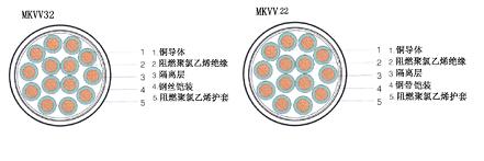 | MKYJV32 | 铜芯聚乙烯绝缘聚氯乙烯护套钢丝锴装阻燃矿用控制电缆 |