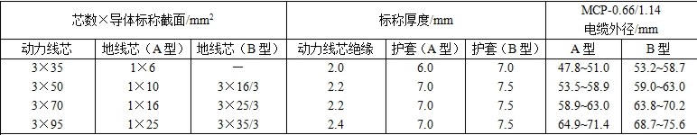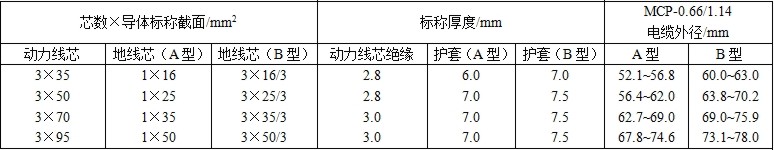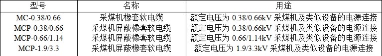 产品型号:MC-0.38/0.66,MCP-0.38/0.66,MCP-0.66/1.14,MCP-1.9/3.3。