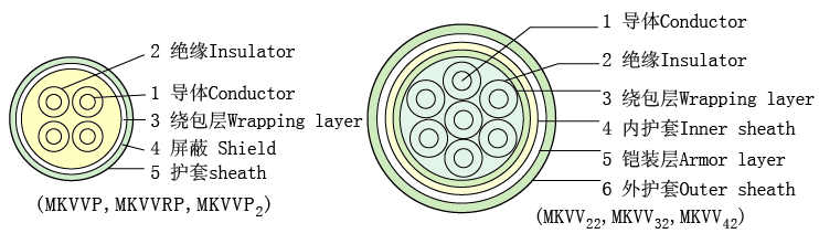 Scope of application MKVV 煤矿用聚氯乙烯绝缘聚氯乙烯护套控制电缆