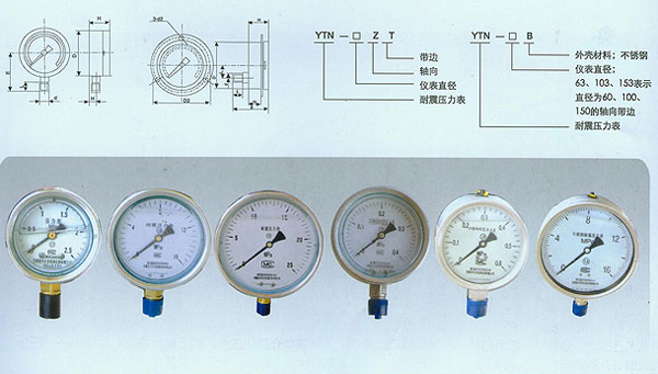 不锈钢耐震压力表YTN-150B的外壳用不锈钢材料制成(简称半钢),可在有腐蚀性、振动较大的恶劣环境中使用。