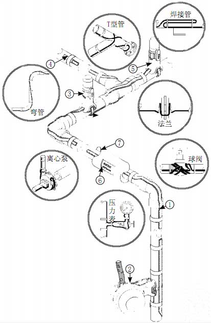 ①伴热带;②电源接线盒;③三通盒;④耐热粘胶带;⑤终端盒;⑥标签;⑦保温层。
