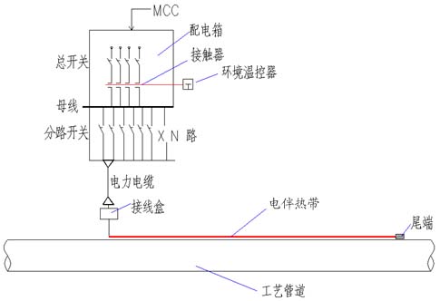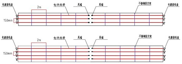 电伴热带置于天沟上方,排列整齐美观,发热均匀,用不锈钢固定架进行固定。安装示意图如下: